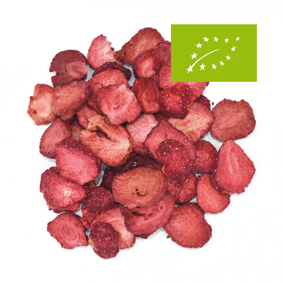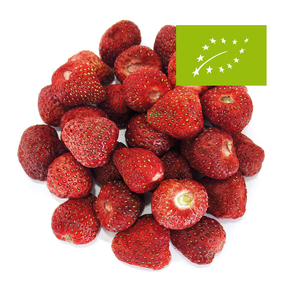 | Truskawka cała liofilizowana premium BIO | Truskawka kostka liofilizowana premium BIO | Truskawka plastry liofilizowana premium BIO |