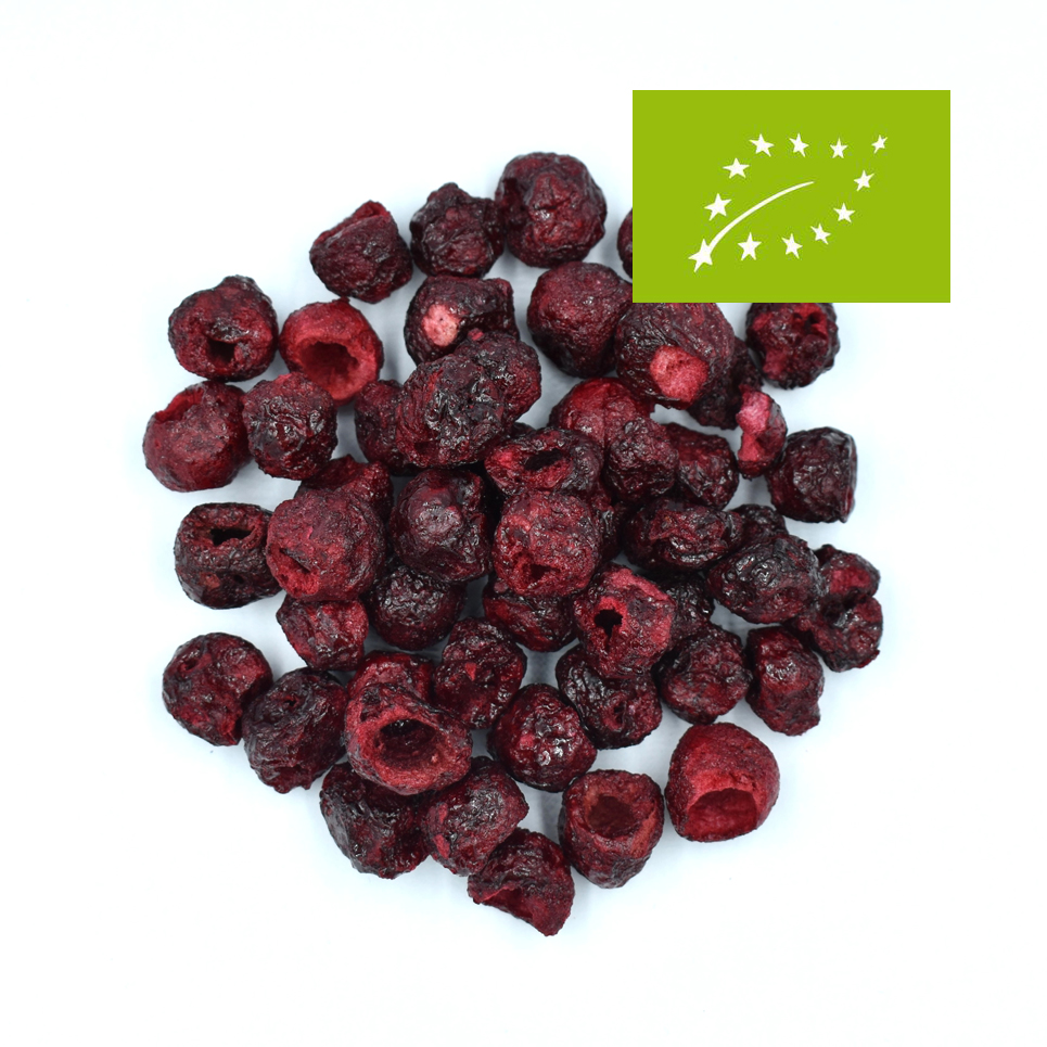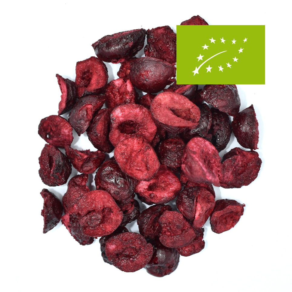 | Wiśnia liofilizowana premium BIO | Wiśnia połówki liofilizowana premium BIO |