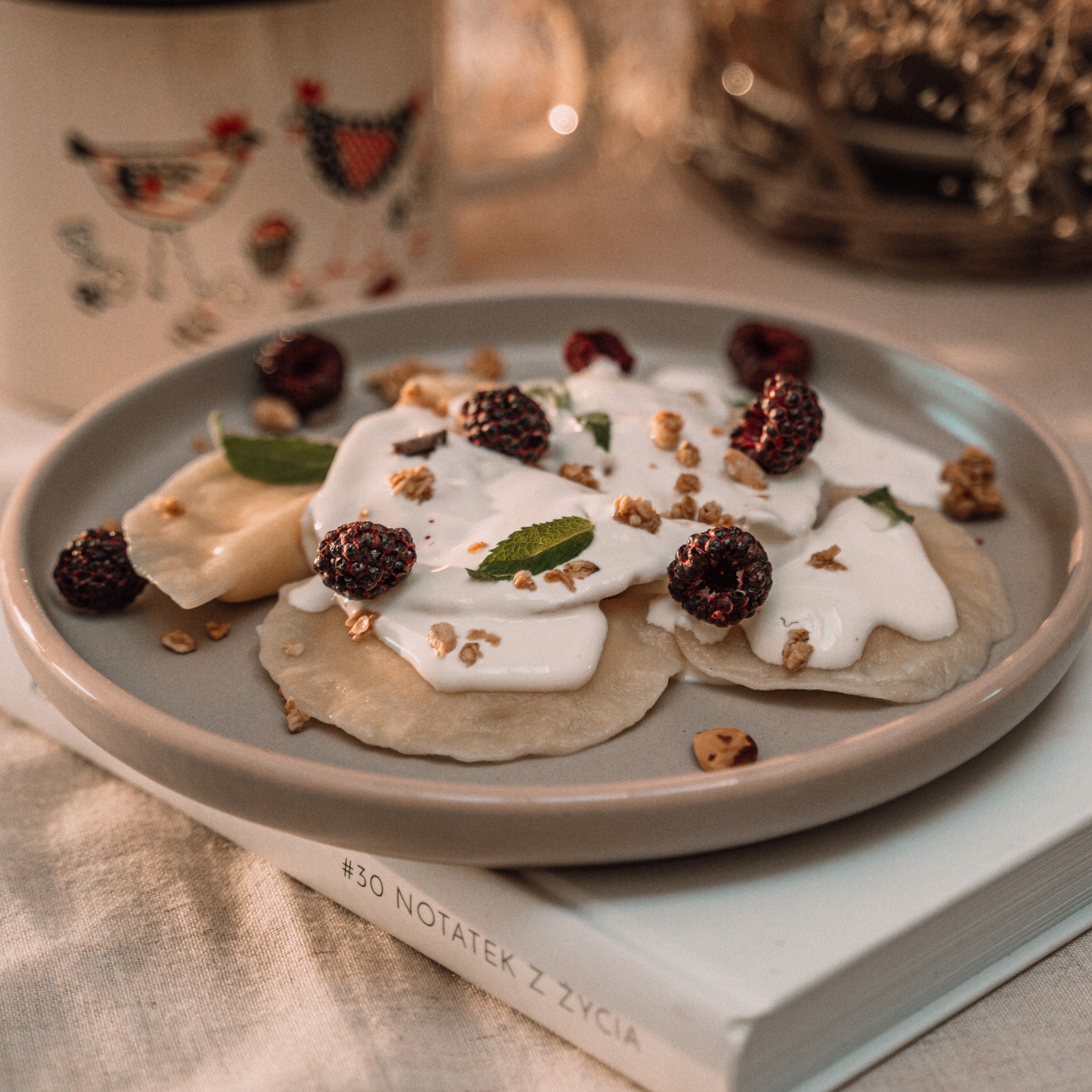 Polewamy naturalnym jogurtem, posypujemy odrobiną muesli i dekorujemy całymi lio czarnymi malinami premium Lioforte.